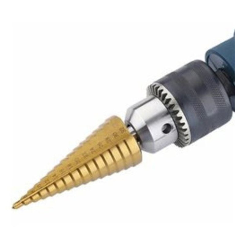 Set de 3 burghiuri din otel acoperite cu titan 4-32 mm, Ideale in prelucrarea materiilor plastice/aliaj/foi subtiri, Numerotare graduala gravata cu laser, Extrem de durabile si rezistente, Maner tip HEX, Calitate premium, Auriu Setul de 3 burghiuri din otel acoperite cu titan este esential pentru orice mester sau profesionist care lucreaza cu prelucrarea materiilor plastice, altele sau a foilor subtiri. Varietate de dimensiuni : Setul include trei burghiuri cu diametre cuprinse intre 4 si 32 mm, oferind o gama larga de optiuni pentru prelucrarea diferitelor tipuri de materiale si proiecte. Ideal pentru materiale diverse : Burghiurile sunt ideale pentru prelucrarea materialelor plastice, altele si foilor subtiri, oferind performante excelente si rezultate precise intr-o varietate de aplicatii. Numerotare gravata cu laser : Fiecare burghiu este echipat cu o numerotare graduala gravata cu laser din 2 in 2 mm, care permite o identificare usoara si precisa a dimensiunilor fiecarui burghiu, fara riscul de a se sterge sau de a deveni ilegibila in timp. Durabilitate si rezistenta : Fabricate din otel de inalta calitate si acoperite cu titan, aceste burghiuri sunt extrem de durabile si rezistente la uzura, asigurand o durata lunga de viata si o performanta constanta in timp. Maner tip HEX : Burghiuriile sunt prevazute cu un maner tip HEX, care asigura o fixare ferma si sigura in diverse scule de gaurit sau masini de prelucrare, evitand alunecarea sau miscarea nedorita in timpul utilizarii. Culoare aurie : Designul elegant si atractiv in culoarea auriu confera acestor burghiuri un aspect premium si distins, evidentiindu-le calitatea si performanta superioara. Calitate premium : Realizate cu atentie la detalii si cu materiale de cea mai inalta calitate, aceste burghiuri sunt concepute pentru a satisface cerintele celor mai exigenti aplicatii si pentru a oferi rezultate excelente in orice proiect. In concluzie, setul de 3 burghiuri din otel acoperite cu titan reprezinta alegerea ideala pentru cei care cauta performanta, durabilitate si precizie in prelucrarea diverselor materiale. Cu caracteristici precum variabilitatea de dimensiuni, durabilitatea sporita si designul ergonomic, acest set ofera sau solutie completa si fiabila pentru orice proiect de prelucrare.