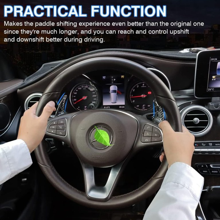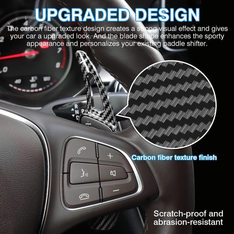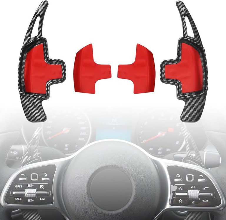 _x000D_Imbunatateste experienta de condus si personalizeaza interiorul masinii tale Mercedes-Benz cu aceste extensii premium pentru padelele schimbatorului de viteze. Realizate din material ABS de inalta calitate si finisate cu un design sportiv din fibra de carbon, aceste extensii ofera un control mai bun asupra schimbarii treptelor si un aspect elegant, potrivit pentru pasionatii de masini._x000D__x000D_Beneficii principale:_x000D_✅ Constructie premium: Fabricate din material ABS rezistent, oferind durabilitate si o senzatie solida la utilizare.✅ Design sportiv: Aspect modern cu textura de fibra de carbon si detalii in rosu/negru, oferind un look agresiv si exclusivist.✅ Utilizare imbunatatita: Extind lungimea padelelor originale, facilitand schimbarea vitezelor in orice pozitie a mainilor pe volan.✅ Montaj rapid si sigur: Se fixeaza ferm cu ajutorul benzii adezive 3M, fara a necesita modificari la volan sau la padelele originale.✅ Compatibilitate extinsa: Se potriveste perfect pe modelele Mercedes-Benz echipate cu padele originale (vezi lista completa mai jos)._x000D__x000D_Compatibilitate:_x000D_? Mercedes-Benz A-Class W176 (2012-2018)? Mercedes-Benz B-Class W246 (2012-2018)? Mercedes-Benz C-Class W204 (2008-2014), W205 (2015-2021)? Mercedes-Benz CLA-Class C117 (2013-2019)? Mercedes-Benz CLS-Class W218 (2011-2018)? Mercedes-Benz E-Class W212 (2010-2016), W213 (2017-2022)? Mercedes-Benz GLA-Class X156 (2014-2019)? Mercedes-Benz GLC-Class X253 (2015-2022)? Mercedes-Benz GLE-Class W166 (2015-2019)? Mercedes-Benz GLS-Class X166 (2016-2019)? Mercedes-Benz S-Class W221 (2007-2013), W222 (2014-2020)_x000D_⚠ IMPORTANT: Se potrivesc doar pe modelele Mercedes-Benz cu padele originale pe volan. Nu sunt compatibile cu modelele fara padele din fabrica._x000D__x000D_Instructiuni de instalare usoara:_x000D_? Pasul 1: Curata padelele originale cu un servetel umed pentru a indeparta praful si grasimea.? Pasul 2: Indeparteaza folia protectoare de pe banda adeziva 3M. Daca temperatura este scazuta, incalzeste usor banda pentru o mai buna aderenta.? Pasul 3: Aplica extensiile pe padelele originale si apasa ferm timp de cel putin 2 minute pentru fixare optima._x000D__x000D_Dimensiuni produs:_x000D_? Lungime: 15.2 cm? Latime: 5.2 cm_x000D_Adauga un aspect sportiv si o functionalitate imbunatatita volanului tau Mercedes-Benz cu aceste extensii de padele premium! ??_x000D_? Pachetul contine:✔ 2 x Extensii padele schimbator volan (stanga + dreapta)✔ Banda adeziva 3M pentru montaj_x000D__x000D_✅ Livrare rapida!✅ Produs testat pentru o fixare sigura si durabila!_x000D_Comanda acum si transforma experienta de condus! ?_x000D__x000D__x000D__x000D_