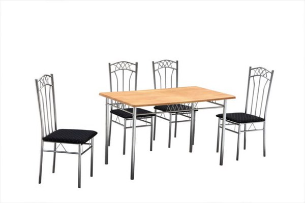 Setul de masa Emma cu 4 scaune, este solutia ideala cand doriti sa luati masa sau pur si simplu sa va relaxati la un ceai sau o cafea alaturi de prieteni sau de cei dragi.Alegerea scaunelor si a mesei, in amenajarea spatiului dining, este esentiala pentru ca definesc intreaga incapere unde va fi situata. Spatarul curbat si sezutul capitonat cu burete si tapitat cu material textil, al scaunelor si inaltimea mesei ofera o pozitie confortabila, un aspect important in momentele cand petrecem timp in spatiul dining.Cadrul mesei si a scaunelor sunt fabricate din metal, vopsit in camp electrostatic gri, blatul mesei este din MDF acoperit cu o folie PVC intr-un design natural. Structura metalica rezistenta ofera stabilitate si totodata confort. Greutatea maxim suportata de masa este de 40 kg, iar scaunele suporta o greutate de pana la 80 kg. Dimensiunea mesei este de 110 cm latime, 70 cm adancime si 72 cm inaltime. Dimensiunile totale a unui scaun sunt 41 cm latime, 42 cm adancime si 87 cm inaltime. Intretinere: pentru cresterea rezistentei in timp a mobilierului se recomanda utilizarea solutiilor concepute special pentru tipul de material si a lavetelor moi din bumbac. A se curata cu o carpa usor umezita intr-o solutie de apa calduta cu sapun (50% apa, 50% sapun PH neutru), apoi stergeti cu o carpa uscata. Produsul se livreaza demontat si este insotit de instructiuni si accesorii pentru asamblare.