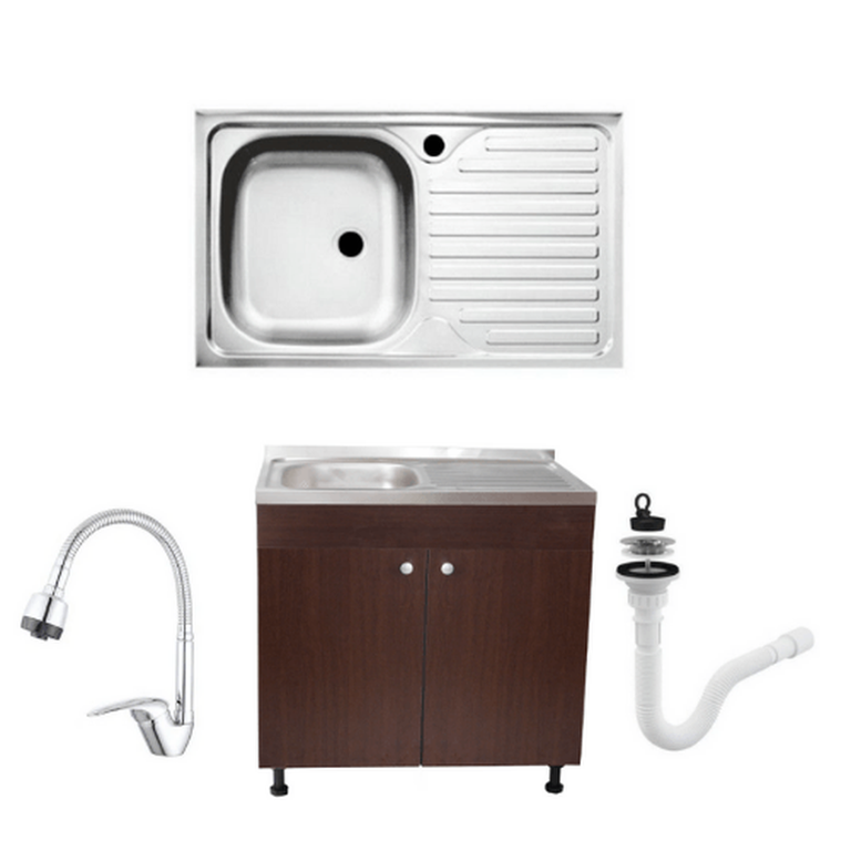Set ,Masca Chiuveta Wenghe , 80 cm X 50 cm X 80 cm, Chiuveta anticalcar ,Baterie lebada flexibila si Sifon scurgere