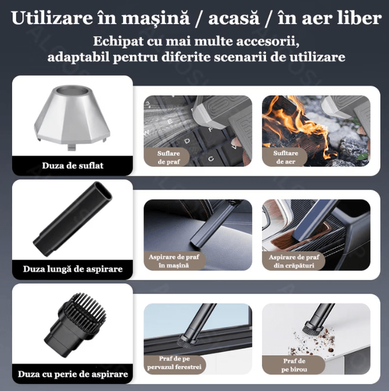 Suflanta Aer si Aspirator Fara Fir Turbo Fan, 2 in 1, portabila, 200W, 130000 RPM, Baterie 8000 mAh, Indepartare Praf