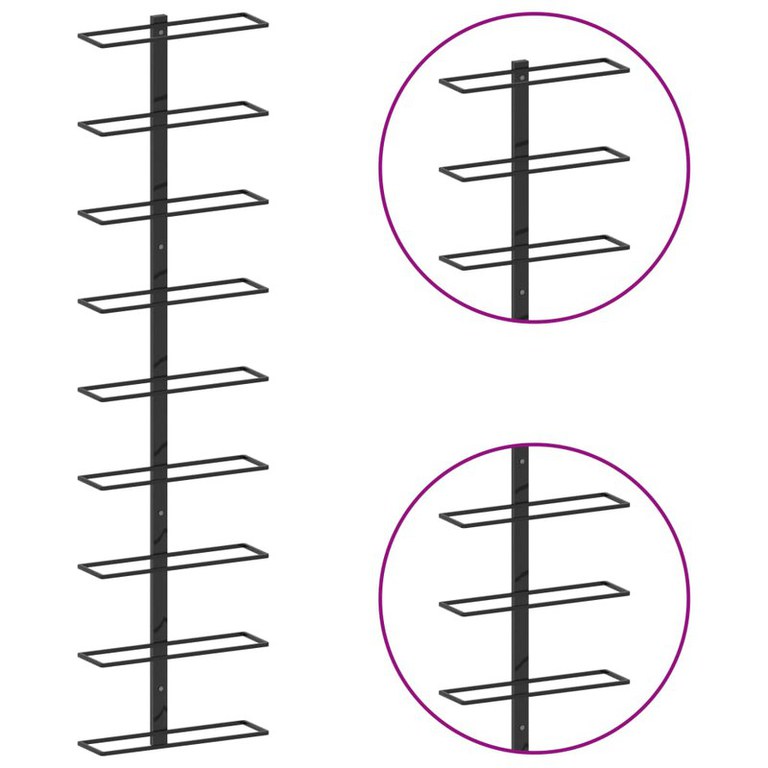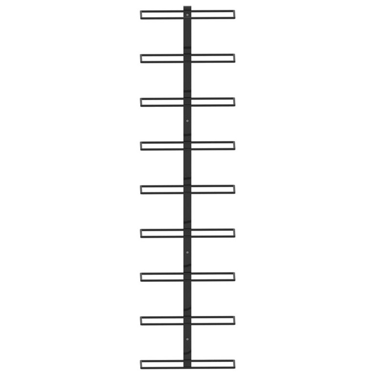 Acest suport pentru sticle de vin de perete are un design simplu, dar elegant, ce adauga o nota de stil modern spatiului dvs. de locuit. Acest suport pentru vin sustine pana la 9 sticle de vin. Este realizat din fier vopsit electrostatic, fiind extrem de durabil si usor de intretinut. Este o alegere ideala pentru a face un cadou prietenilor si cunoscutilor dvs. iubitori de vin. In plus, cu materialele de montare incluse, acest suport pentru vin poate fi montat cu usurinta pe perete. De asemenea, este usor de asamblat. Va rugam sa retineti ca sticlele de vin nu sunt incluse in livrare.Culoare: Negru Material: Fier vopsit electrostaticDimensiuni: 24 x 8 x 95,4 cm (l x ad. x i)Sustine pana la 9 sticle de vin (sticlele nu sunt incluse)Include materiale de montajAsamblare necesara: Da