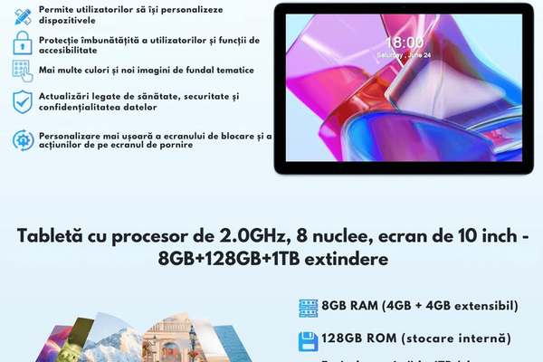 8a07-6ae0dc6193c6.png" alt="" />/n? Performanta excelenta cu procesor Octa-Core Allwinner A523/nTableta VISIONHUB 2-in-1 este echipata cu un procesor puternic Octa-Core Cortex-A55 ce ofera o performanta de 6x mai mare comparativ cu modelele anterioare bazate pe A53. Acest procesor, impreuna cu GPU ARM G57, asigura o experienta rapida si fluida, ideala pentru gaming, multitasking, aplicatii de productivitate si streaming de continut HD./n? Ecran IPS HD de 10.1" cu rezolutie 1280x800 pentru imagini clare si culori vibrante/nBucura-te de un ecran IPS de 10.1 inch, cu rezolutie 1280x800, care ofera imagini clare si unghiuri largi de vizualizare. Perfect pentru vizionarea de filme, navigarea pe internet, citirea cartilor electronice si lucrul de la distanta./n/n⚡ 8GB RAM (4GB + 4GB Extensibil) si 128GB ROM cu suport de pana la 1TB/nAceasta tableta este dotata cu 8GB RAM (4GB + 4GB extensibil), oferind o performanta fluida, fara lag, indiferent daca folosesti mai multe aplicatii simultan. Cu 128GB ROM pentru stocare interna si suport pentru card MicroSD de pana la 1TB, ai spatiu generos pentru aplicatii, jocuri, filme, muzica si documente./n/n? Baterie de mare capacitate 8000mAh pentru utilizare extinsa/nNu iti mai face griji pentru bateria descarcata! Tableta VASOUN P30 este echipata cu o baterie puternica de 8000mAh, ce ofera o autonomie de pana la 12 ore de utilizare continua, fiind ideala pentru lucru, gaming si divertisment. In plus, incarcarea rapida prin port Type-C asigura o reincarcare eficienta si convenabila./n/n? Camera principala de 8MP si camera frontala de 2MP pentru apeluri video si fotografii clare/nCaptureaza momentele speciale cu ajutorul camerei din spate de 8MP, perfecta pentru fotografii clare si detaliate. Camera frontala de 2MP este ideala pentru apeluri video pe Zoom, Google Meet, Skype si pentru realizarea selfie-urilor de calitate./n/n? Conectivitate avansata: WiFi 5G & 2.4G Dual-Band si Bluetooth 5.2/nPentru o conexiune stabila si rapida, tableta este echipata cu WiFi Dual-Band (5G + 2.4G), reducand interferentele si imbunatatind experienta de navigare online si streaming. De asemenea, tehnologia Bluetooth 5.2 permite conectarea rapida a accesoriilor, precum casti wireless, boxe, tastaturi si mouse-uri Bluetooth./n/n? Functionalitate 2-in-1: Tastatura, Mouse si Stylus pentru o experienta completa/nTableta vine cu o tastatura detasabila si un mouse, transformand dispozitivul intr-un laptop portabil ideal pentru lucru, studii, editare de documente si notite rapide./n?️ Compatibilitate Widevine L1 pentru streaming HD/nVizioneaza continut de inalta calitate pe platforme precum Amazon Prime Video, Google Play, YouTube, Hulu si Disney+, datorita certificarii Widevine L1./n/n/n? Continutul pachetului:/n✔️ Tableta 10.1"✔️ Tastatura Bluetooth✔️ Mouse Wireless✔️ Stylus Pen✔️ Incarcator Type-C✔️ Cablu de date✔️ Adaptor de alimentare✔️ Ac pentru slotul cardului SIM/MicroSD✔️ Manual de utilizare/n/n✅ De ce sa alegi tableta VisionHub?/n✔ Performanta ridicata cu procesor Octa-Core Cortex-A55 si GPU ARM G57✔ Ecran IPS HD de 10.1 inch pentru imagine clara si culori vibrante✔ 8GB RAM si 128GB ROM + suport de 1TB stocare externa✔ Baterie de 8000mAh pentru pana la 12 ore de utilizare✔ Camera foto 8MP + 2MP, perfecta pentru apeluri video si fotografii✔ WiFi 5G & 2.4G si Bluetooth 5.2 pentru o conectivitate stabila✔ Tastatura + Stylus incluse pentru productivitate si multitasking✔ Compatibilitate Widevine L1 pentru streaming HD/n? Cumpara acum tableta VisionHub si bucura-te de o experienta de top! ??