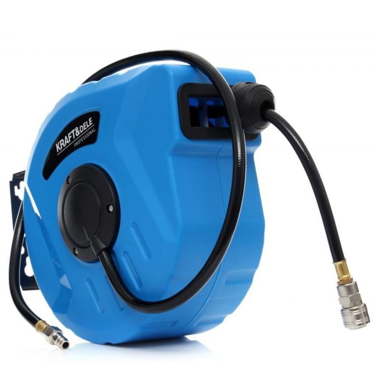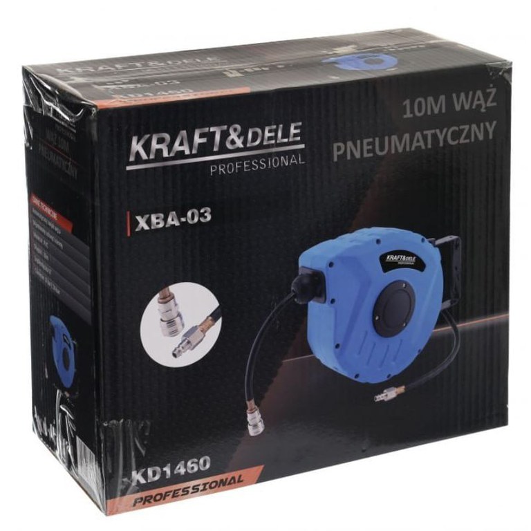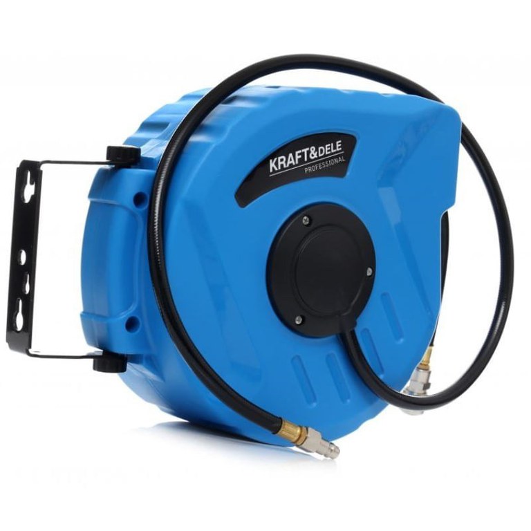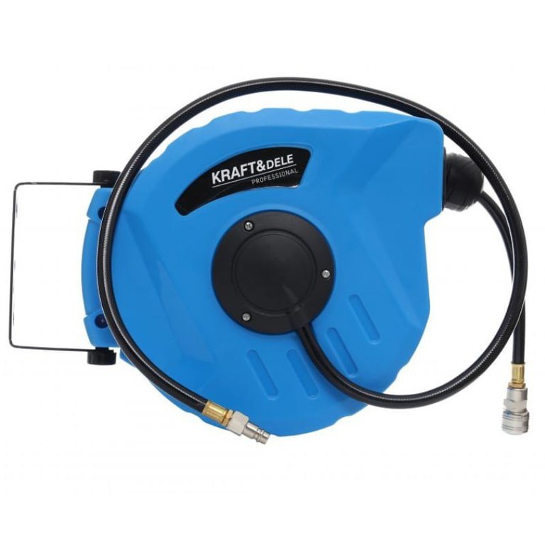 Tambur furtun, Kraft&Dele, automat, 12x8 mm,10 m, 24 bar/nTambur furtun, automatic, realizat cu mare precizie si din cele mai bune materiale rezistente la uzura si deteriorare mecanica./nTamburul este prevazut cu un suport de fixare pe perete care poate fi rotit la 180 grade./nTamburul este prevazut cu un furtun cu infasurare automata./nFurtunul asigura un flux etans de aer si lichid la presiuni statice ridicate./nFurtunul poate fi utilizat ca un accesoriu pentru un compresor, scule pneumatice, aparate de spalat cu presiune si alte echipamente care necesita rezistenta la presiune ridicata./n