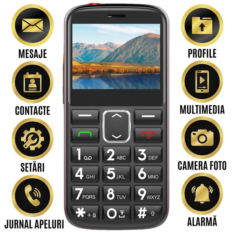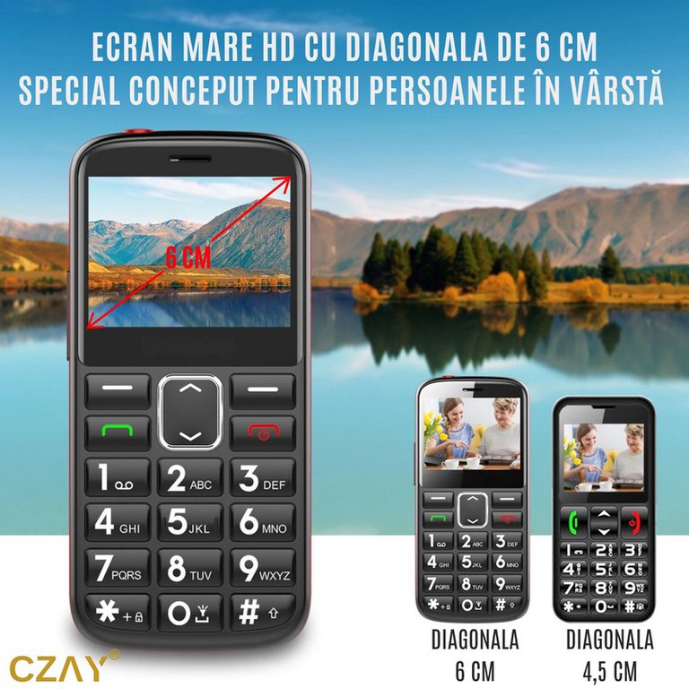 Telefon Mobil Seniori Taste Mari CZAY®, Meniu Limba Romana, Ecran Foarte mare, Camera Foto,Volum Puternic, 2G,Lanterna