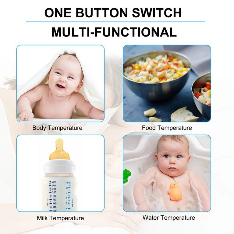Descriere: Termometru digital infrarosu cu precizie sporita, portabil, care poate fi utilizat foarte usor, avand un design ergonomic. Datorita tehnologiei infrarosu, acest termometru poate fi utilizat fara a atinge subiectul, evitand astfel o posibila infectare. Este utilizat preponderent pentru masurarea temperaturii corpului. Senzorul infrarosu are o precizie mare, este stabil si asigura o masuratoare exacta cu o eroare foarte mica. Se poate seta o alarma la o anumita valoare a temperaturi, care odata depista, va declansa un sunet. De asemenea, suporta si modul mute. Display-ul LCD ofera o luminozitate foarte buna afisand datele foarte clar, fiind astfel usor de citit. De asemenea, in functie de valoarea temperaturii, display-ul afiseaza o alta culoare. Specificatii: Marca: MRG Model: ZK-YK1028 Versiune: M Culoare: Alb / Mov Material: Plastic Dimensiuni: 150 x 85 x 43 mm Greutate: 100 g Metoda de masurare: Fara contact Distanta de masurare: 3 5 cm Unitatea de masura: Grade Celsius / Grade Fahrenheit Domeniu de masura: 32 43 grade CelsiusEroare maxima: /- 0.3 grade Celsius Rezolutie afisare: 0.1 grade Celsius Oprire automata: 30 s Alimentare: 2 x baterie AAA 1.5 V (nu sunt incluse) Numar memorii: 32 Timp masurare: 1 s Numar culori display: 3 (Verde, Galben, Rosu) Pachetul Contine: 1x Termometru Digital Non Contact 1x Cutie/Ambalaj prezentare
