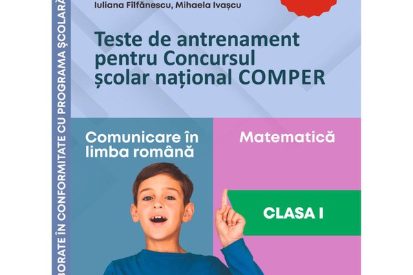 Teste de antrenament pentru Concursul scolar national COMPER - Comunicare in limba romana, Matematica Clasa I - Constantin FilfanescuCOMPER este un concept-pivot pentru o intreaga strategie de invatare bazata pe achizitii progresive standard si pe evaluari permanente in functie de standardul de invatare continut in programele scolare, in mod interactiv si diferentiat (prin activitati de consolidare, de aprofundare-excelenta si de ameliorare- remediere). Diplomele si Certificatele Comper sunt o garantie a evaluarii corecte a rezultatelor invatarii, dar si a valorii resurselor educationale elaborate de cadrele didactice din Centrele de invatare Comper. Lucrarea este destinata elevilor de clasa I care se pregatesc suplimentar pentru sustinerea Concursului scolar national Comper la toate cele trei etape anuale: etapa 1 (modulul 1 si 2), etapa a II-a (modulul 3 si 4), Etapa a III-a – Olimpiada digitala Comper (modulele 1,2,3,4,5)., la disciplinele LIMBA SI COMUNICARE IN LIMBA ROMANA si MATEMATICA SI EXPLORAREA MEDIULUI. Subiectele de concurs pentru Etapa I si Etapa a II-a contin un numar de 18 intrebari formulate in asa fel incat sa corespunda nivelului de programa corespunzator fiecarui modul pana la data concursului. Continutul acestor teste este structurat pe doua niveluri de invatare diferentiata si progresiva: STANDARD (16 intrebari) – cu grad de dificultate mediu, conform standardelor prevazute de programele scolare – si EXCELENTA (2 intrebari) – cu grad de dificultate specific olimpiadelor scolare, atat pentru sectiunea COMPER-MATEMATICA, cat si pentru sectiunea COMPER-LIMBA SI COMUNICARE IN LIMBA ROMANA. Subiectul de concurs pentru Etapa nationala contine 18 intrebari si este structurat pe doua niveluri de invatare diferentiata si progresiva: STANDARD (16 intrebari) – cu grad de dificultate mediu, conform standardelor prevazute de programele scolare – si EXCELENTA (2 intrebari) – cu grad de dificultate specific olimpiadelor scolare, atat pentru sectiunea COMPER-MATEMATICA, cat si pentru sectiunea COMPER-LIMBA SI COMUNICARE IN LIMBA ROMANA.