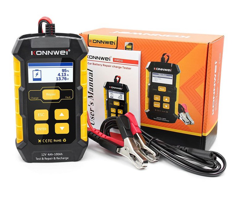 Tester Baterie Auto KONNWEI KW510, Testare CCA, Incarcare, Reparatie, Suport 12V, Rezistenta, SOH, SOC, Test Ripple