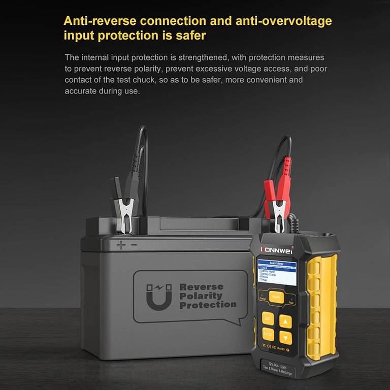 Testerul auto KONNWEI KW510 este un dispozitiv profesional 3-in-1 pentru testarea, reincarcarea si reparatia bateriilor auto de 12V. Echipat cu functii avansate precum testarea tensiunii, rezistentei interne, capacitatii de pornire (CCA), procentului de sanatate (SOH) si a procentului de incarcare ramasa (SOC), acest tester este ideal pentru uz personal sau profesional in service-uri auto.Functii principale:Testare baterie: afiseaza SOH, SOC, CCA, tensiune si rezistenta internaCranking Test: verifica performanta bateriei la pornirea motoruluiCharging Test: monitorizeaza tensiunea in timpul procesului de incarcareReparatie baterie: regenerare a bateriilor uzate prin impulsuriTest Ripple: verificare stabilitate si calitate incarcare alternatorProtectie polaritate inversa si supratensiune pentru siguranta sporitaCarcasa din material ignifug, rezistenta la temperaturi extreme (-50°C pana la foc)Compatibilitate:Baterii auto plumb-acid 12V: Regular Flooded, GEL, AGM Flat Plate, AGM Spiral, EFBSuporta standarde internationale: CCA, BCI, CA, MCA, JIS, DIN, IEC, EN, SAECompatibil cu baterii de pornire auto, motociclete, vehicule electrice 2-3 roti, UPS si sisteme EPSSpecificatii tehnice:Tensiune de lucru: 12VGama de baterii acceptate: 4Ah – 100AhStandard testare: 100 – 2000 CCA (in functie de sistem)Ecran LCD usor de cititSuporta 8 limbi: Engleza, Germana, Franceza, Spaniola, Italiana, Portugheza, Olandeza, RusaIdeal pentru utilizatorii care doresc sa detecteze rapid problemele bateriei fara a o demonta, KONNWEI KW510 combina performanta avansata cu siguranta in utilizare si un design rezistent la temperaturi extreme.