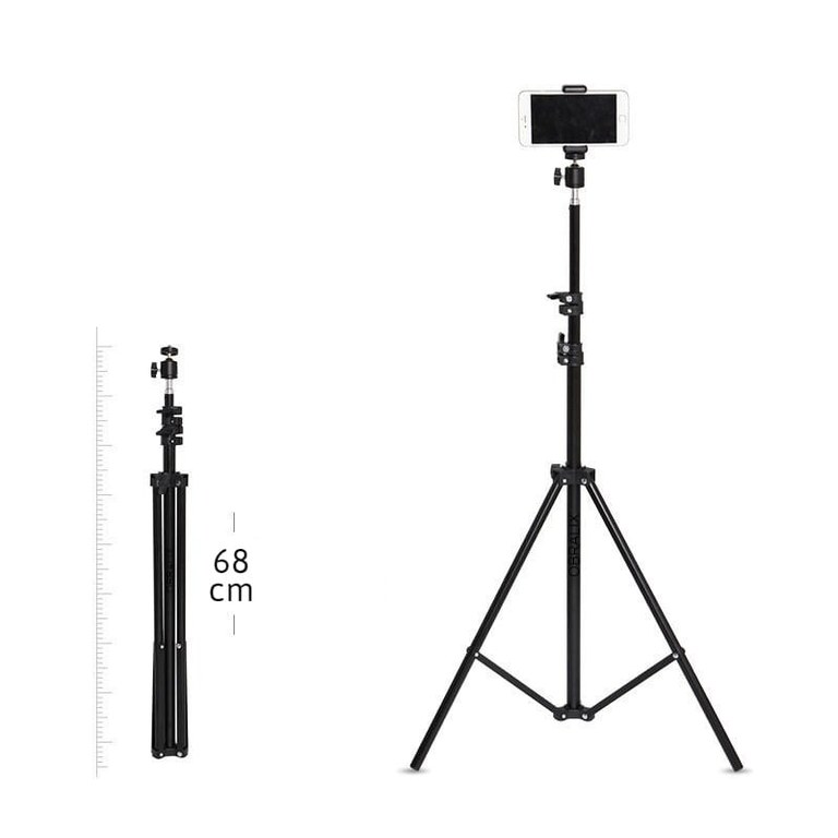 Acest trepied cu caracteristici speciale are multiple avantaje si functionalitati care il fac potrivit pentru fotografi si videografi de toate nivelele. Iata o prezentare detaliata a caracteristicilor sale:/n/nInaltime maxima de 2.1 m: Cu aceasta inaltime impresionanta, trepiedul iti permite sa obtii un unghi de inregistrare mai larg si mai precis. Poti captura cadre panoramice sau sa fotografiezi de la inaltime, adaugand interes si diversitate in fotografiile si in inregistrarile tale./n/nTelecomanda Bluetooth: Trepiedul vine echipat cu o telecomanda Bluetooth, oferindu-ti control convenabil la distanta. Poti realiza fotografii sau inregistrari video fara a fi nevoie sa atingi aparatul, asigurandu-ti stabilitatea necesara pentru imagini clare si netede./n Husa de protectie: Pachetul include o husa speciala care protejeaza trepiedul in timpul transportului si depozitarii. Aceasta mentine trepiedul intr-o stare impecabila si il protejeaza de zgarieturi, lovituri sau alte daune accidentale./n Portabilitate usoara: Cu o greutate de doar 700 g, trepiedul este usor de transportat in timpul calatoriilor si sesiunilor de fotografiere in aer liber. De asemenea, se pliaza la o dimensiune compacta de 68 cm, astfel incat poate fi depozitat comod in rucsacuri sau genti de transport./n/nVersatilitate in utilizare: Acest trepied este potrivit atat pentru telefonul mobil, cat si pentru camera foto sau video. Poti utiliza trepiedul pentru a obtine selfie-uri perfecte sau inregistrari video stabile cu telefonul mobil. De asemenea, asigura stabilitatea necesara pentru a realiza fotografii si inregistrari profesionale cu echipamente foto/video mai mari./n Cap rotativ 360 de grade: Trepiedul este prevazut cu un cap rotativ care ofera o libertate deplina in alegerea unghiului de inregistrare. Poti explora noi perspective in fotografiere si filmare, ajustand trepiedul pentru a obtine cadre unice si creative./n/nConstructie robusta din aliaj de aluminiu: Trepiedul este fabricat dintr-un aliaj de aluminiu rezistent, asigurand o sustinere stabila si de lunga durata. Aceasta constructie robusta protejeaza echipamentul tau de daunele accidentale si iti ofera incredere in utilizarea trepiedului in diferite situatii si conditii./n/nCu toate aceste caracteristici speciale, trepiedul se dovedeste a fi ideal pentru fotografi si videografi de toate nivelele. Indiferent daca esti un incepator pasionat de fotografie sau un profesionist in cautare de noi modalitati de a-ti imbunatati creativitatea, acest trepied iti ofera posibilitatea de a crea continut de inalta calitate in diverse situatii si locatii.