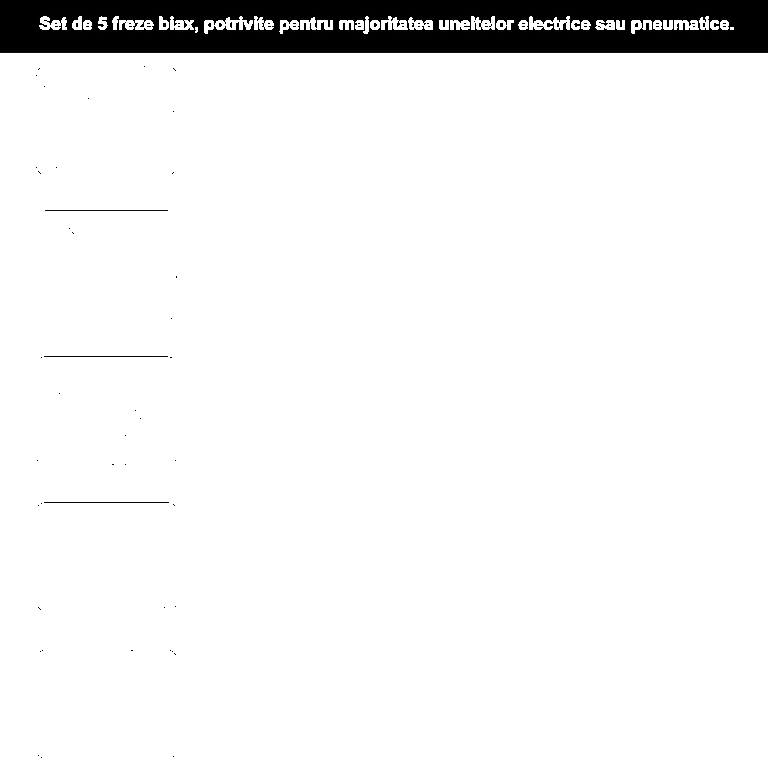 Trusa 5 Freze Biax de Carbura din Otel Tungsten pentru Metal, Lemn si altele, Diamentru Varf 12 mm si Tija Prindere 6 mm