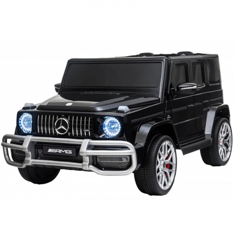 Specificații mașinută Mercedes G63 echipată PREMIUM 4 Motoare electrice de putere 45W, total 180W Echipată cu baterie reîncărcabilă de 12V 10Ah Sistem de amortizare Extra BULBAR pentru bară față 2 uși...
