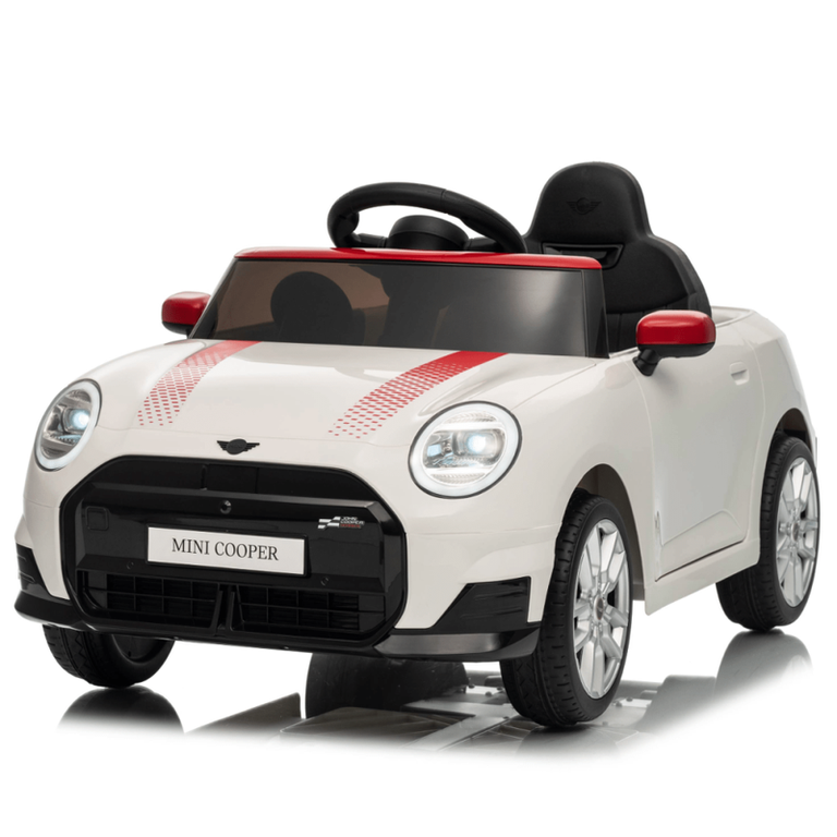 Masinuta electrica pentru copii, Mini COOPER 90W 12V 7Ah, roti EVA, scaun tapitat, alba