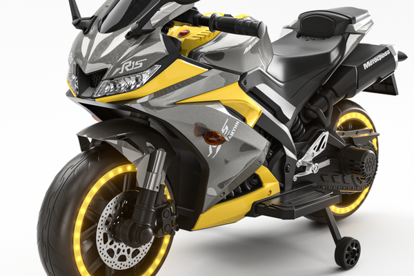 Motocicleta electrica pentru 3-9 ani, Kinderauto TR15 SuperBike PREMIUM, culoare Galbena