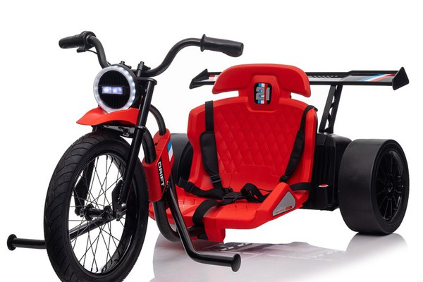 Motocicleta electrica pentru copii, Kinderauto Drift-Trike, roti moi, centura siguranta, 500W, 24V 10Ah, rosu