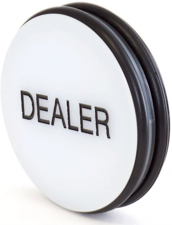 Buton Dealer de dimensiuni mari pentru jocul de poker. Cuvantul DEALER este gravat in mijlocul butonului pe ambele fete. Butonul se foloseste pentru a identifica pozitia de dealer de la masa de joc sau la jocurile amicale pozitia jucatorului care...