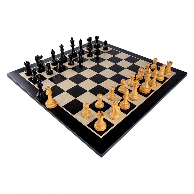 Un set de piese elegant model Staunton New Executive, standard turneu, cu tabla de sah din lemn Black Artar cu dimensiunea campului de 58 mm fara notatie