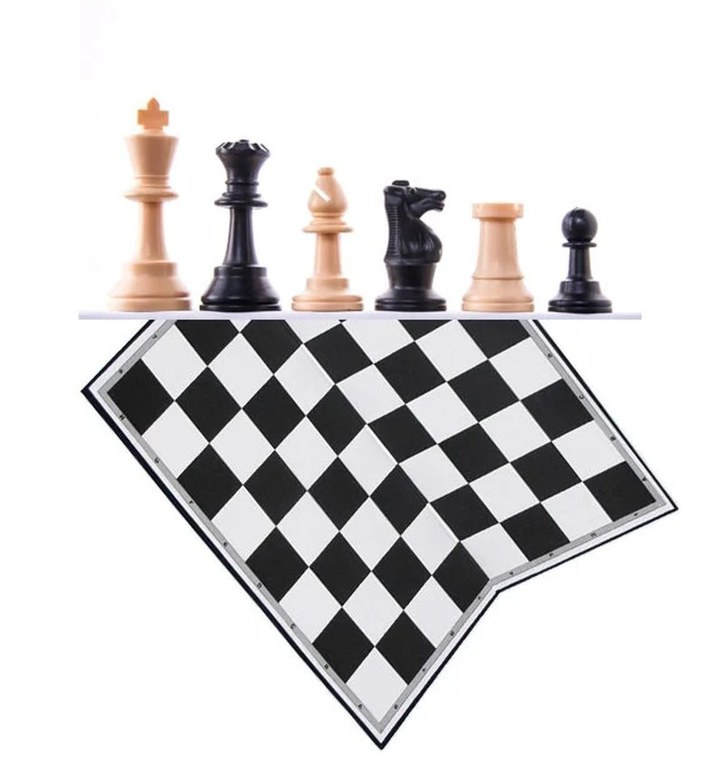 Combo set cu piese sah din plastic Staunton 6 light cu tabla carton si geanta piese