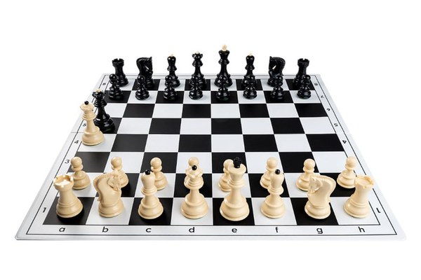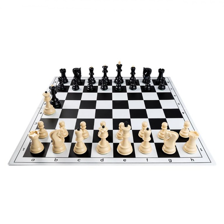 Un set de sah elegant cu piese plastic ABS model Zagreb cu tabla de sah pliabila din material plastic si dimensiunea campului de 57mm
