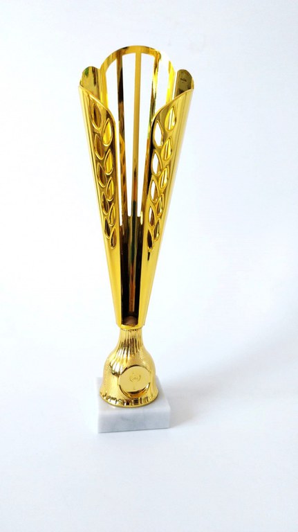 Cupa MS73 este disponibila in urmatoarele variante : Aur: inaltime cupa 32 CM Bronz : inaltime cupa 32CM Argint : inaltime cupa 32 CM Material: plastic si marmura Diametru baza ce poate fi personalizat A-L 65 x l 18mm B- L 65 x l 18mm S- L 65 x l 18mm