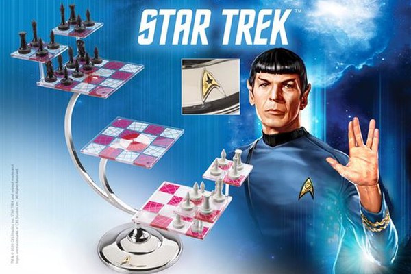 Replică autentică a setului de șah tridimensional, folosit în recuzita serialului TV clasic Star Trek. Include 32 de piese turnate care măsoară aproximativ 4 cm înălțime. Setul de șah măsoară aproximativ 33 cm înălțime cu table de joc acrilice...