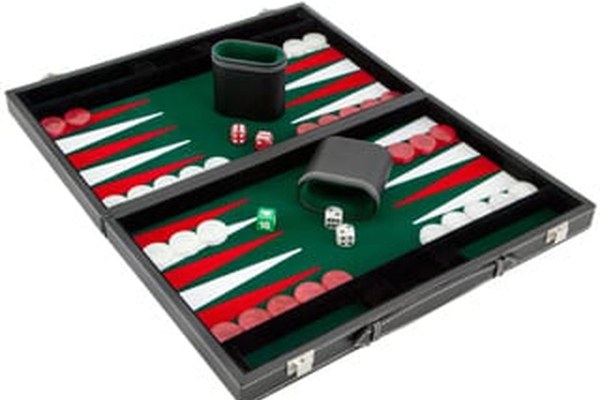 Superb joc de table Backgammon tip servieta. Servieta din piele ecologica la exterior cu cusaturi albe si material plusat la interior, ceea ce confera jocului de table o atmosfera placuta si silentioasa comparativ cu seturile traditionale din lemn....