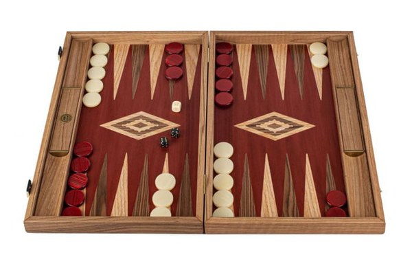 Set joc table backgammon Stejar Rosu cu insertii nuc
