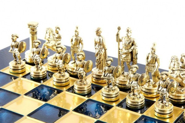 Set sah piese si tabla din metal - Grecii si Romanii (mediu) Manopoulos