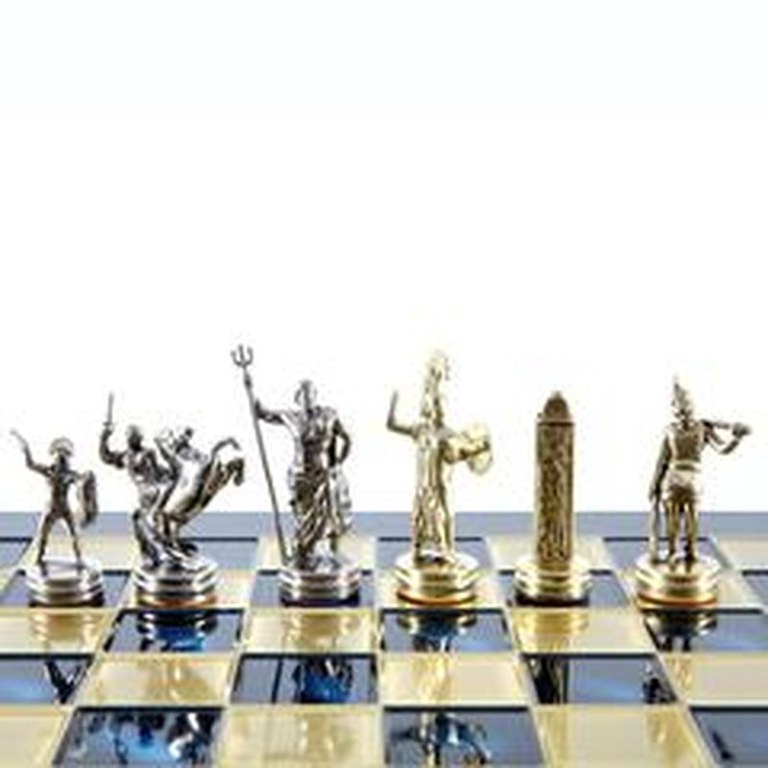 Acest complet set de sah de la producatorul grec Manopoulos include piesele de sah reprezentand mitologia greaca si tabla de sah din alama. Piesele de sah se bazeaza pe Poseidon, zeul marii impreuna cu alte zeite, eroi si creaturi antice grecesti....