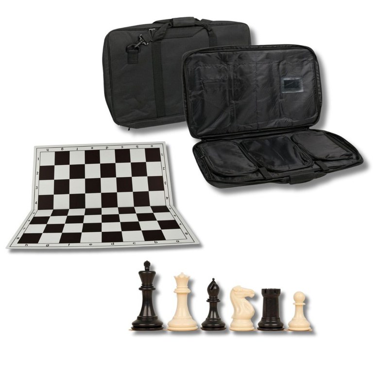 Un set de sah potrivit deopotriva la scoala sau la cel mai pretentios turneu. In geanta mare avem o tabla de sah din material plastic pliabila in 2 alb-negru si piese de sah Staunton 6 Profesional,cele mai elegante piese de plastic din oferta noastra....
