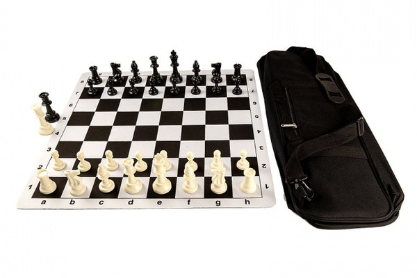 Setul de sah este compus din: - tabla de sah din mousepad subtire no 6 - set piese plastic light Staunton 6 (410g) - geanta eleganta pentru transportul tablei si pieselor Culoarea gentii: negru