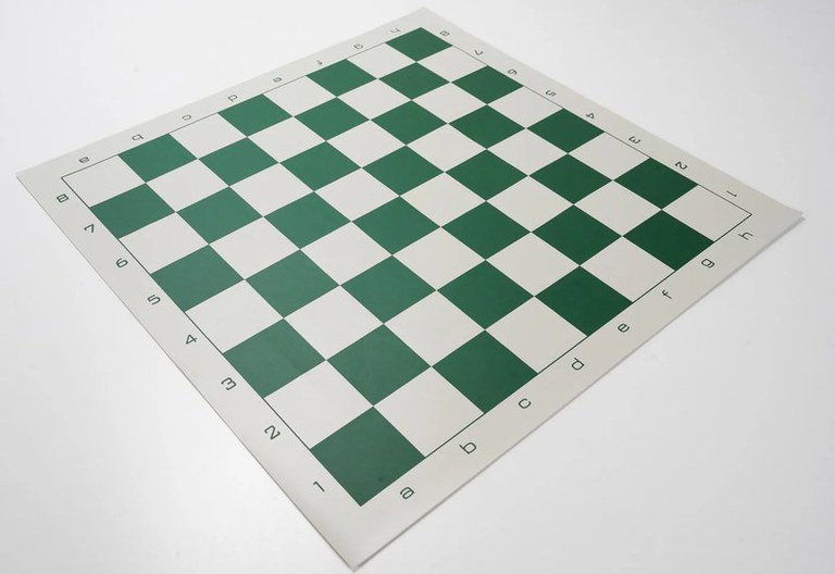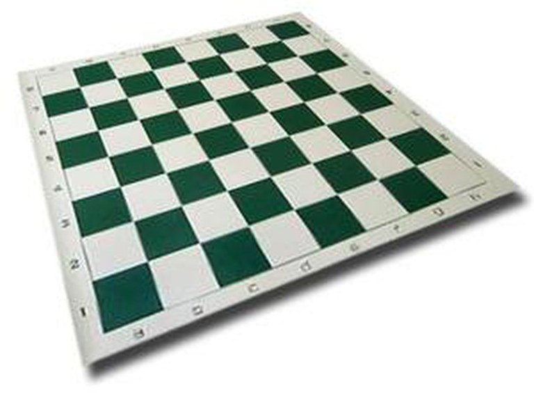 Tabla de sah din vinil. Usor de transportat, o alegere buna pentru o tabla de turneu. Dimensiuni: 50,8 cmx 50,8 cm Dimensiunea unui camp: 57 x 57 mm Greutate: 0,23 kg Culoarea alb-verde