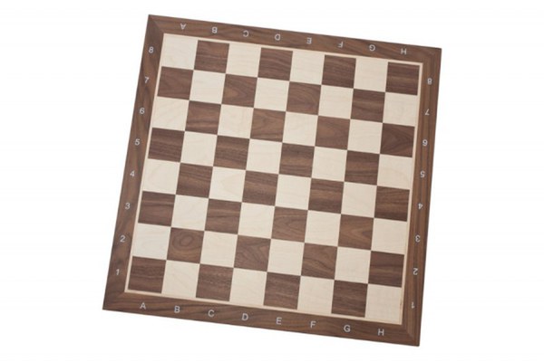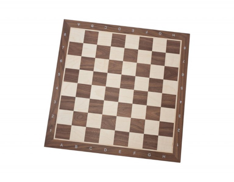 Tabla de sah de turneu no 7 din lemn de nuc si artar (walnut maple) intarsiat cu rama din lemn de nuc Dimensiuni tabla: 59cm Dimensiune camp: 64 mm Culoare: natural Recomandat pentru piese no. 7 (inaltimea regelui 100mm) sau mai mari Fabricat...