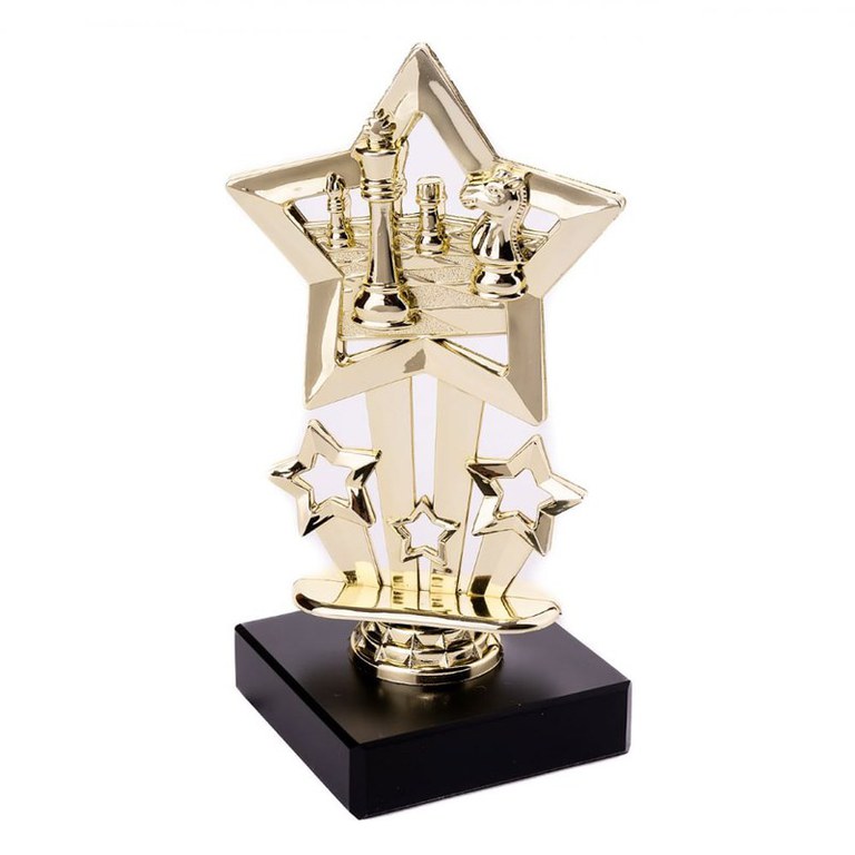 Anunt actualizat: 24 Nov, 2025 07:11 Descriere Trofeu Sah auriu inscriptionat cu cateva figuri de sah. Dimensiune trofeu: 16 cm
