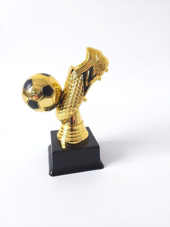 Trofeu Fotbal auriu inscriptionat cu minge de fotbal Inaltime:13 cm Diametru: 9 cm Diamentru soclu 5,5 cm