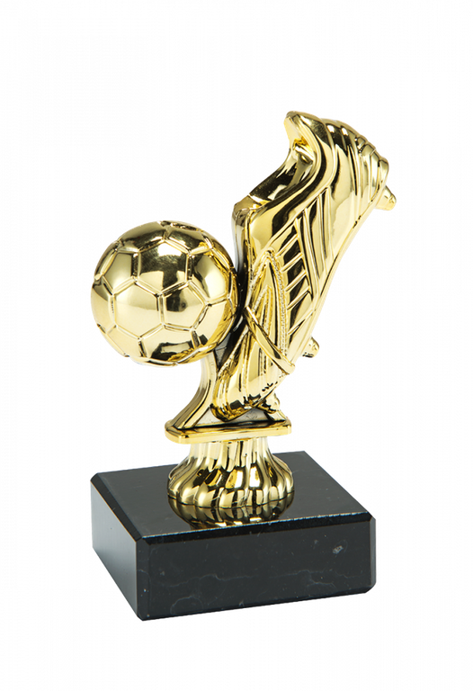 Trofeu Fotbal auriu inscriptionat cu minge de fotbal Inaltime:10 cm Diametru: 7 cm Diamentru soclu 5,5 cm Material figurina: Plastic Material soclu: marmura