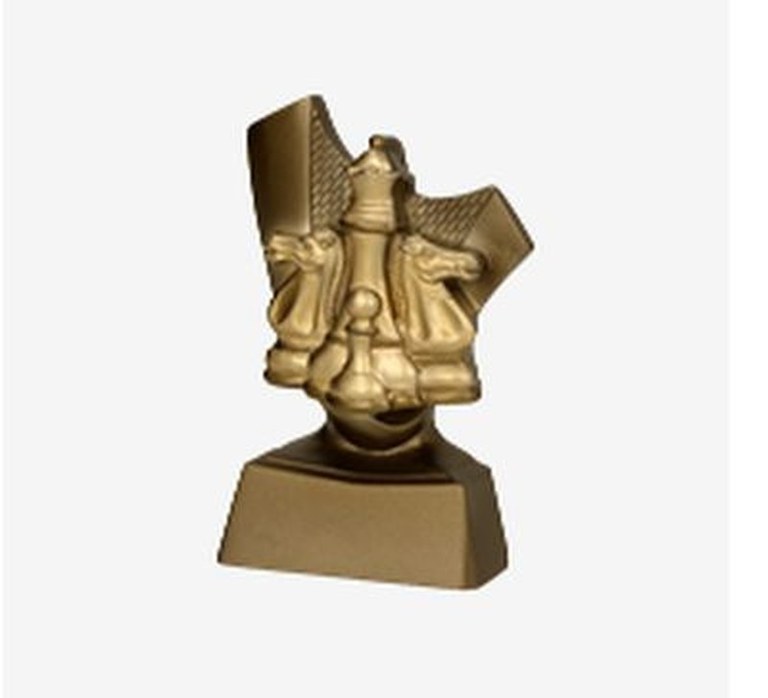 Un trofeu unic, turnat, care înfățișează figuri de șah. Datorită culorii sale aurii, va arăta grozav pe un raft cu trofee. Aceasta este o idee excelentă pentru recunoașterea individuală în turneele de șah. Caracteristici principale: Inaltime:...