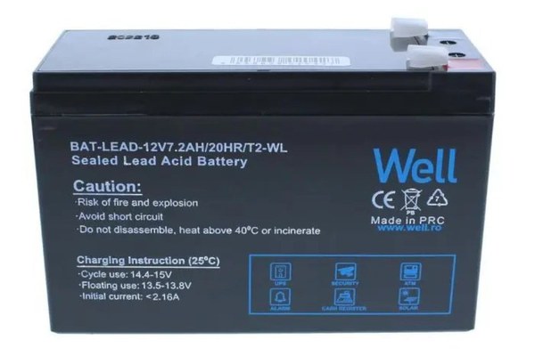 Acumulator plumb acid Well 12V 7.2AH, borne late, terminal T2