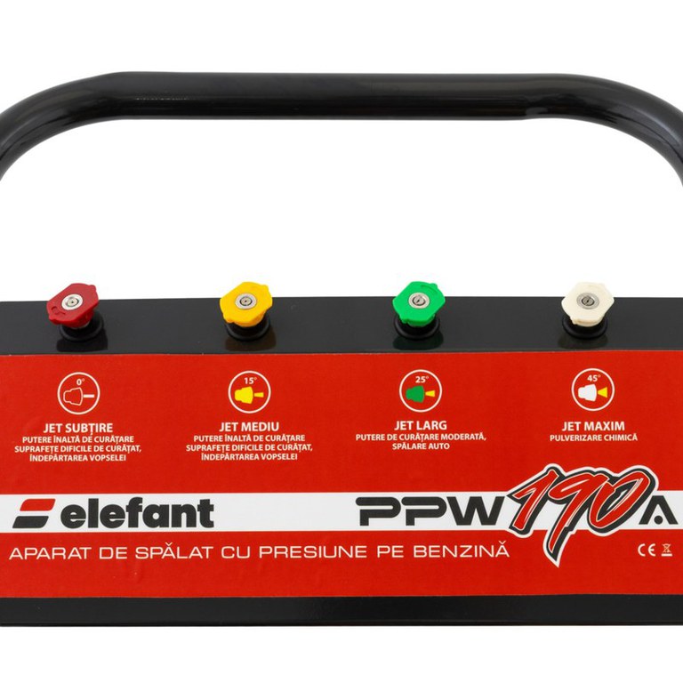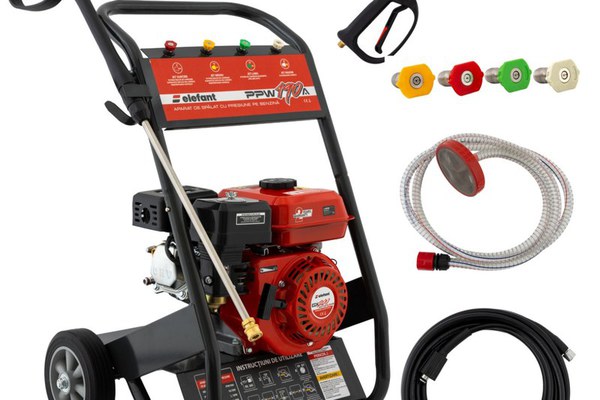 Aparatul de spalat cu presiune pe benzina ELEFANT PPW190A este un echipament robust si puternic, ideal pentru curatarea suprafetelor mari si dificile. Cu un debit maxim de 10 litri pe minut si o presiune de lucru de 165 bar, acest aparat ofera performante exceptionale in curatarea diverselor suprafete, inclusiv a masinilor, curtilor si echipamentelor industriale. Echipat cu un motor termic de 6,5 CP (4,8 kW), PPW190A functioneaza la o viteza de rotatie de 3600 rot/min, asigurand puterea necesara pentru a face fata celor mai solicitante lucrari de spalare. Motorul pe benzina permite utilizarea aparatului in locuri fara acces la curent electric, oferind astfel flexibilitate maxima. Pachetul include toate accesoriile necesare pentru o utilizare optima: un furtun filtrat de 1,5 m pentru alimentare din bazine de apa, o tija de 100 cm si un furtun lance de 10 m, care faciliteaza accesul la suprafete greu de atins. Aparatul vine cu 4 duze interschimbabile pentru diferite tipuri de jet: subtire, mediu, larg si maxim, adaptandu-se la diferite cerinte de curatare. Greutatea aparatului este de 32,5 kg, iar dimensiunile compacte (510x460x498 mm) il fac usor de manevrat si transportat. Acest aparat de spalat cu presiune pe benzina ELEFANT PPW190A este solutia perfecta pentru utilizatorii care au nevoie de un echipament puternic si fiabil pentru lucrarile de curatare intensive. Detalii tehnice: - Debit maxim: 10 L/min - Presiune de lucru: 165 Bar - Putere motor: 6,5 CP (4,8 kW) - Viteza de rotatie: 3600 rot/min - Motor termic - Greutate: 32,5 Kg - Dimensiuni: 510x460x498 mm Continut pachet: - 1 x Furtun filtrat pentru bazine de apa (1,5 m) - 1 x Tija (100 cm) - 1 x Furtun lance (10 m) - 4 duze: jet subtire, mediu, larg, maxim