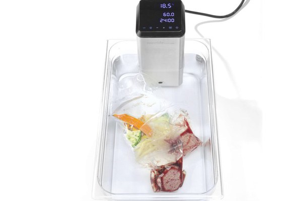 Aparat Sous-Vide Plus IPX7, capacitate pana la 80L, 2200 KW, temperatura de la 5°C la 99°C, pas de 0.07°C, display digital, 130x145x(H)330 mmPompa termica de inalta precizie sous vide cu control al temperaturii.Interfata cu ecran tactil de 4 inch.Conceput pentru a se potrivi cu orice vas rotund sau plat cu o adancime minima de 16,5 cm cu ajutorul unei cleme.Cele mai bune performante pana la 80 de litri. Temperatura de lucru de la 5˚C la 99˚C, cu o precizie de 0.07˚C. Timerul poate fi setat intre 1 minut si 99 de ore.Ofera o stabilitate exceptionala la temperatura.Dispozitivul de protectie opreste aparatul in caz de utilizare accidentala fara apa. Pompa de circulatie pentru a elimina zonele reci si calde. Senzor de temperatura pentru a preveni supraincarcarea si supraincalzirea.Include geanta de depozitare. IPX7, poate rezista stropilor si submersiunii accidentale.Cand timpul de gatire este complet, nu va faceti griji, aplicatia va pastra alimentele la temperatura optima pentru a le mentine. Controlul in mai multe limbi: Prima aplicatie de gatit multilingvistica sous vide.