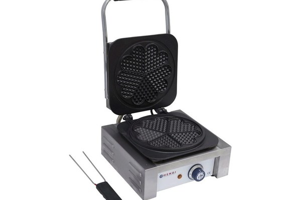 Aparat pentru vafe Brussels vafe / waffles, 2200W, Hendi, suprafata antiaderenta, termostat, protectie supraincalzire, furculita inclusa, 5 zone pentru vafe in forma de inimaVafe belgiene 5 vafe in forma de inimaSuprafata de gatire din fonta acoperita cu un strat anti-lipireControlul temperaturii prin termostatFurculita pentru indepartarea vafelorMâner izolatTava detasabila pentru picurarea grasimilorProtectie la supraîncalzireAlimentare la retea 220V
