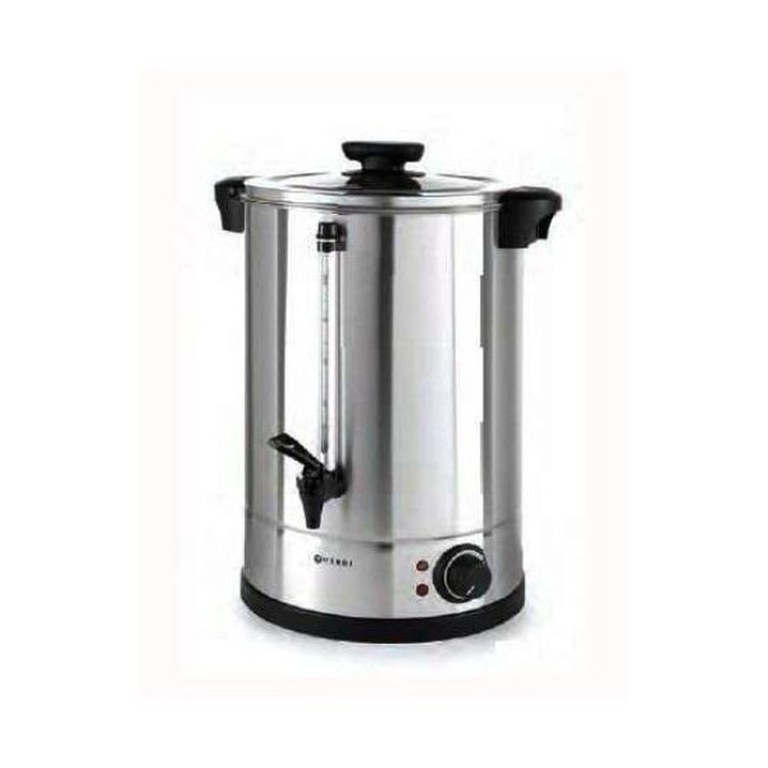 Aparatul este folosit pentru a fierbe rapid cantitati mari de apa necesare pentru prepararea bauturilor calde, astfel incat este utilizat in principal in restaurante de hotel cu autoservire, precum si in timpul tot felul de evenimente, seminarii, conferinte, etc. o revolutie de apa cazan modern de dimensiuni mici si o capacitate de 20 litri stativ cu un aspect estetic si o operare confortabila si usoara. Din acest motiv, poate fi folosit cu succes si in gastronomie mica sau in birou.Calitatea inalta asigura o functionare durabila si fara probleme si garanteaza siguranta persoanelor care o deservesc- Fabricat din otel inoxidabil AISI 304- Manerele neincalzitoare si manerul capacului din polipropilena- Capac cu sistem de blocare sigur "Twist-Lock"- Robinet din polipropilena fara picurare- Inaltimea maxima pentru vasele de la robinet: 130 mm- Un indicator clar al nivelului apei, exprimat in litri- Comutator de pornire / oprire cu capac din silicon si buton rotativ pentru a seta temperatura dorita- Temperatura controlata de un termostat in intervalul: de la 30 ° C la 100 ° C- Comutarea automata a functiilor de incalzire si mentinerea temperaturii dorite- Indicatoare luminoase pentru functiile de incalzire si mentinere a temperaturii- Element de incalzire plasat jos, protejat impotriva calcarului- Protectie la supraincalzire cu resetare manuala- Dispozitivele nu sunt destinate prepararii ciocolatei- Timp de fierbere a apei min 42 (+, - 5 minute)Alimentare la retea 220VDimensiuni L/l/H 360x380x598 mm