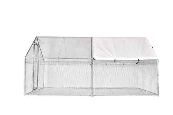 Cotetul de gaini este fabricat din otel galvanizat de inalta calitate, cu un acoperis din polietilena 140g/m2, rezistent la apa si raze UV, oferind protectie impotriva soarelui, ploii, zapezii si altor conditii meteorologice nefavorabile. Peretii laterali din sarma ai cotetului ajuta la prevenirea neplacerilor sau a accidentelor, permitand in acelasi timp circulatia aerului. Poarta cotetului este echipata cu un sistem de blocare, pentru a va mentine animalele in siguranta sporita. Produsul este usor de asamblat.Caracteristici:Dimensiuni 3x4x2m;Dimensiune usa 1.7x0.8m;Structura si plasa din otel galvanizat;Protectie soare si ploaie;Culoare argintiu;Usa cu zavor.Continut pachet:Cadru;Conectori metal;Acoperis;Plasa;Bride plastic.Specificatii:Culoare ArgintiuDiametru si grosime cadru φ25 - 0.8mmDimensiuni 3x4x2 mGrosime plasa gard 0.9 mmMaterial cadru Otel galvanizatMaterial plasa Otel galvanizatMaterial produs Otel galvanizatTip produs Cotet pasariUsa tarc Da - 1buc