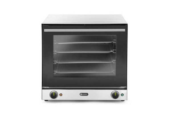 Cuptor inox cu convectie asigura o distributie uniforma a caldurii in interiorul cuptorului, grabind astfel procesul de gatire.Gatire mai rapida: Deoarece aerul fierbinte este suflat direct catre alimente, acestea se vor gati cu aproximativ 25% mai rapid decat la coacerea conventionala.Gatire uniforma: Cuptoarele conventionale pot avea zone fierbinti in functie de amplasarea elementilor de incalzire, insa ventilatorul din cuptorul cu convectie ajuta la uniformizarea temperaturii interioare prin distribuirea egala a aerului cald.Rumenire mai frumoasa: Aerul dintr-un cuptor conventional poate deveni foarte umed datorita evaporarii lichidelor din alimente si unele mancaruri la cuptor se vor gati in aburi. Functia de convectie creeaza o atmosfera uscata care caramelizeaza zaharurile mult mai repede decat coacerea normala, astfel incat alimente cum ar fi carnurile sau legumele obtin o crusta mai frumoasa, ramand in acelasi timp umede si fragede in interior.Economisesti energie: Datorita faptului ca mancarurile sunt gatite intr-un timp mai scurt si de obicei la o temperatura mai scazuta, un cuptor electric cu convectie este mai economic decat un cuptor conventional.Utilizare in conditii de sigurantaGeamul usii este dublu pentru o siguranta sporita. Patru picioare anti-alunecare asigura o amplasare stabila a aparatului pe toate tipurile de suprafete.Curatare usoaraSuprafata interioara a cuptorului este neteda si usor de curatat – peretii pot fi stersi numai cu o carpa umeda si vor fi perfect curati.Cuptor cu convectie model H90. Solutia perfecta pentru restaurantele mici, unitatile de fast-food, pentru prepararea caserolelor, tartelor, legumelor coapte si a altor articole direct din cuptor, precum si pentru micile brutarii si magazinele care doresc sa isi extinda oferta cu paine proaspata si gustoasa.Dimensiunea redusa, alimentarea cu energie electrica de 230 V si consumul economic de energie electrica fac posibila instalarea lor aproape peste tot.Dispozitivul este extrem de usor de instalat si de utilizat.Se poate achizitiona separat Tava Inox, pentru cuptoarele H90 si H90S,