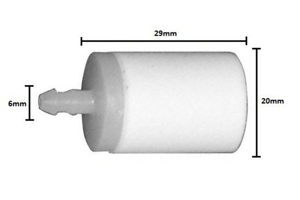 Filtru benzina drujba Husqvarna - 6mmDescriereFiltru benzina pentru orice model de drujba Husqvarna.Pentru dimensiuni va rugam sa consultati imaginea produsului.