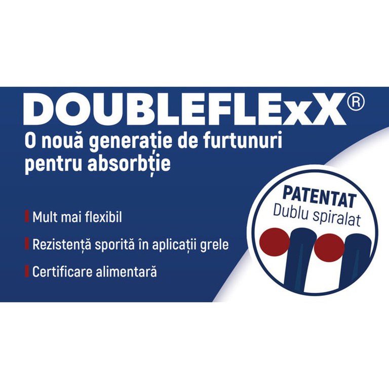 DESCRIERE:Furtunurile DOUBLEFLExX® dispun de o armatura cu spirala dubla patentata care asigura furtunului:Rezistenta crescuta la absorbtieFlexibilitate excelentaRaza redusa de indoire si rezistenta superioara la indoireProtectie mai usoara impotriva alunecarii si uzurii in timpul utilizarii. Pretul afisat este per metru liniar !!!Furtunurile DOUBLEFLExX® sunt produse de GAP Plastomere, Franta, parte a Grupului german Schauenburg Hose Technology. De la introducerea lor pe piata, multi clienti au asistat direct la avantajele tehnologiei inovatoare DOUBLEFLExX in comparatie cu furtunurile standard armate in spirala.Seria DOUBLEFLExX este deja disponibila pentru o serie de aplicatii in industria alimentara, agricola, sanitara, piscicola si, mai sunt multe de facut, deoarece DOUBLEFLExX® nu este doar un furtun, este o tehnologie unica!Furtun flexibil cu spirala dubla – brevetat de Grupul german SCHAUENBURG. Spirala interna este utilizata ca suport principal al structurii furtunului, iar spirala externa asigura o flexibilitate extrem de mare si un suport suplimentar pentru rezistenta la vid a furtunului. Structura INEDITĂ a furtunului impreuna cu peretele foarte moale, rezistent la temperaturi scazute, ofera o indoire si flexibilitate unice.PROPRIETĂTI SI APLICATII:Proiectat pentru aspirare si livrare – sarcini medii lichide – in aplicatii agricole si camioane cisterna. Spirala dubla PATEN