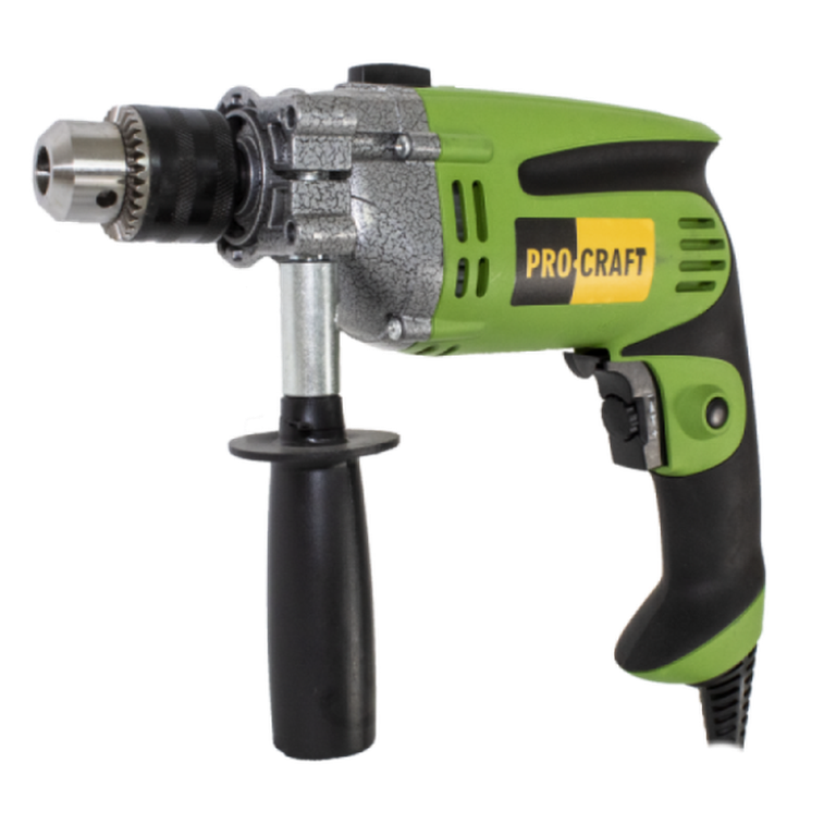 DescriereO noua bormasina Procraft PS1050 cu capacitatea motorului de 1000 de Watti destinati forarii si insurubarii diametrelor mari de suruburi. Poti lucra cu el in toate tipurile de materiale de constructii: beton, metal, lemn, ceramica, plastic, zidarie etc. Poti gauri si poti percuta, adica are functia de ciocan.Daca trebuie sa decupezi un canal in perete si nu ai o masina de canelat cu discuri diamantate, poti atasa o dalta bormasinei si actionand butonul in pozitia percutie poti sa-ti sapi/decupezi singur formele necesare in perete sau pardoseala. Functia de gaurire se va folosi separat si asistat de celelelte functii ajutatoare: rotatie inversa; pentru cazurile cand se blocheaza un spiral in masa de beton, sau insurubarea stramba a unui surub de diametru mai mare.Incorporeaza o mandrina standard, cu cheie, cu dimensiunea de deschidere de 13 mm. In imediata vecinatate este prevazut un guler unde se ataseaza manerul suplimentar din aliaj de masa plastica care-ti va fi de folos in timpul lucrului cu bormasina Procraft PS1050.Interiorul este asamblat din piese de calitate inalta, menite sa satisfaca cerintele pentru o scula semiprofesionala. Daca ai grija de aceasta unealta electrica, o feresti de patrunderea prafului si apei in interior, te va servi indelungat. Continut pachet1 x Cheie pentru mandrina1 x Maner demontabil1 x Manual de utilizare1 x Pereche carbuni de rezerva1 x Tija pentru reglarea adancimii de gaurire