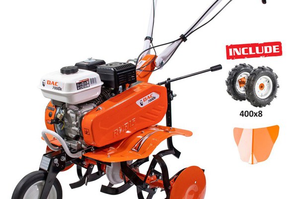 Motosapa DAC 7000K are cutie de viteze in doua trepte inainte si una inapoi.Ruris pune la dispozitia clientilor o motosapa puternicasi eficienta pentru maruntirea solului din solarii sau gradini.In mai putin de 30 minute o suprafata de 500mp este gata de insamantat sau pregatita pentru plantat.Pentru zonele inguste la capatul de rand din solarii, gradini, motosapa se poate intoarce prin actionarea cutiei de viteze pe mersul inapoi.