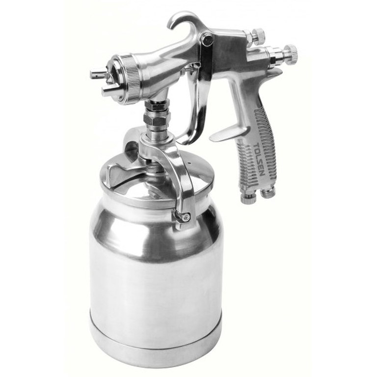 Aprobare CE Tipul de alimentare: aspiratie Duza standard: 1,7 mm Consumul de aer: 6 cfm Presiunea de operare a aerului: 3,5 bar Latimea modelului: 200-290mm Capacitate vopsea: 1000ml Ambalare: dupa cutie de culoare