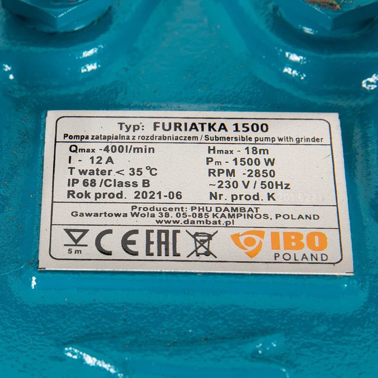 Pompa apa murdara cu tocator si cutit, IBO FURIATKA 1500, 1500W, 400 l/min, H-18m, cu Plutitor si Protectie Termica